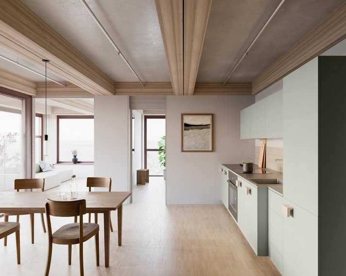 Für Ihre Wohnqualität: - Parkett- oder Anhydritboden in Wohn Schlafbereich - Fussbodenheizung und Freecoolingsystem in der gesamten Wohnung - Moderne offene Küche in hellen Farben mit Induktionskochfeld und Geschirrspüler - Badezimmer mit Dusche/WC - Eigener Waschturm in der Wohnung - Loggia teils mit Aussicht