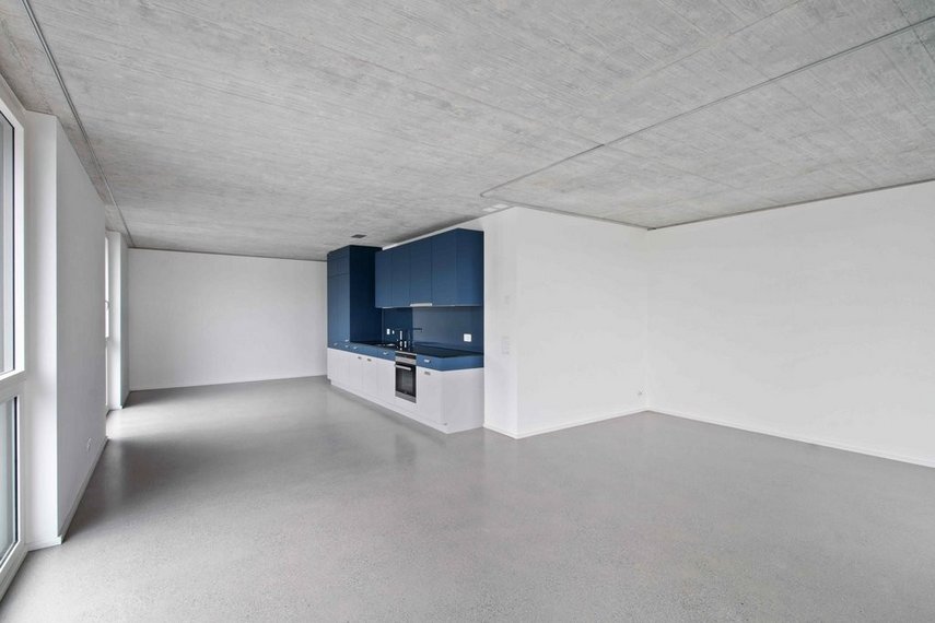 - Wohn-/Schlafzimmerbereich mit Unterlagsboden Zement