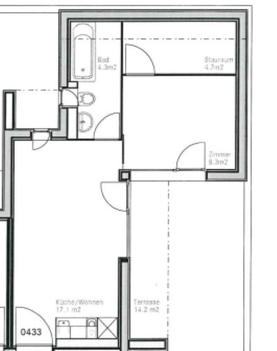 Für Ihre Wohnqualität: - Offene Küche mit üblichem Ausbaustandard - Nasszelle mit Badewanne und WC - Praktischer Stauraum im Schlafzimmer - Sonnige und geräumige Terrasse