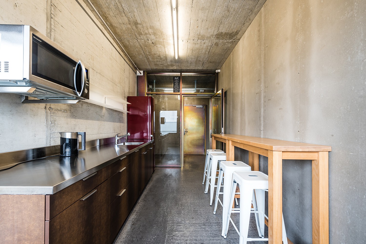 Gut fürs Geschäft: - Zustand Rohbau - Heller Raum mit grossflächigen Verglasungen - Korridor und ausgebaute Gemeinschaftsküche zur Mitbenutzung - Anhydrit-Estrich Bodenbelag - Elektrisch bedienbare Lamellenstoren - Höhe Betondecke: 2.94 m - Gemeinsame Nutzung der WC-Anlagen - Restaurant Noerd-Kantine mit begrünter Dachlandschaft im Hause - 2 Bus-Haltestellen Linie 80 in 200 m Distanz - Optimale Anbindung ans Autobahnnetz - Abstellplätze im Parkhaus in der Nachbarliegenschaft