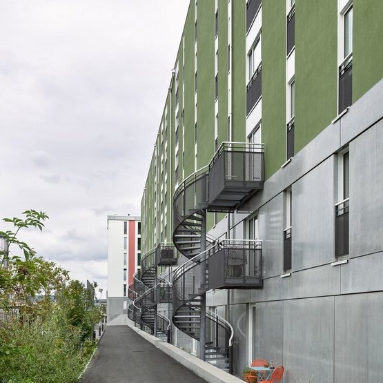 Like living the high life but want it to be sustainable and comfortable too? The innovative Holzhybridhochhaus is just what you need. This unmistakable landmark of the Zwhatt site offers individuals, couples and families as well as flatmates a taste of urban life with a warm, wood-influenced ambience.